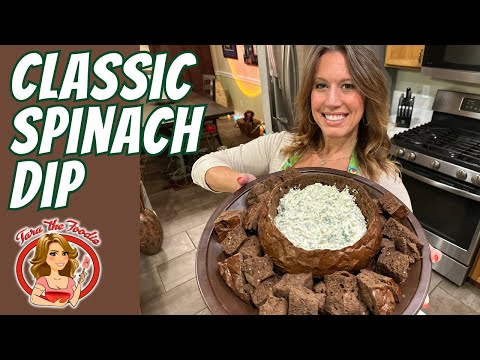 This is the spinach dip we've all had at holiday gatherings and special occasions... sour cream, mayo, vegetable soup seasoning packet, water chestnuts, spinach, and green onions. Mix it all together and serve it in a big, delicious pumpernickel bread bowl. It's classic. It's timeless. It's delicious!