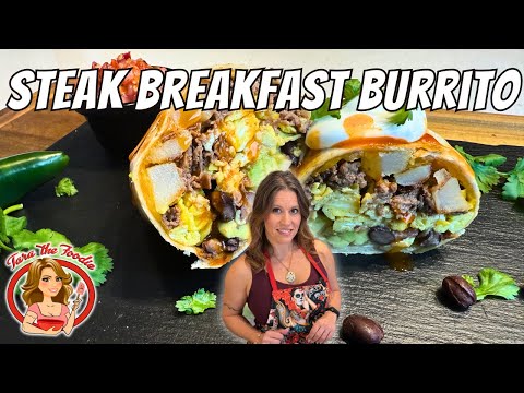 Start your morning right with the ULTIMATE Steak Breakfast Burrito! This hearty, flavor-packed burrito is loaded with tender, juicy steak, fluffy scrambled eggs, crispy fried potatoes, melty cheddar cheese, black beans, fresh salsa, and creamy avocado—all wrapped up in a warm tortilla.